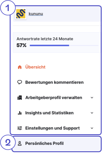 Mit dem neuen Navigationsmenü haben Sie ab sofort alle Funktionen und Insights zu Ihrem Employer Branding Profil auf kununu noch besser im Blick! Sie finden Sie noch schneller, wonach Sie suchen.