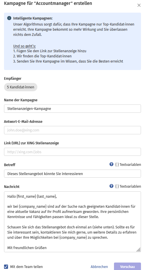 Im Anschluss können Sie die Top-Talente ganz gezielt und passend zu Ihrer Position anschreiben. Die