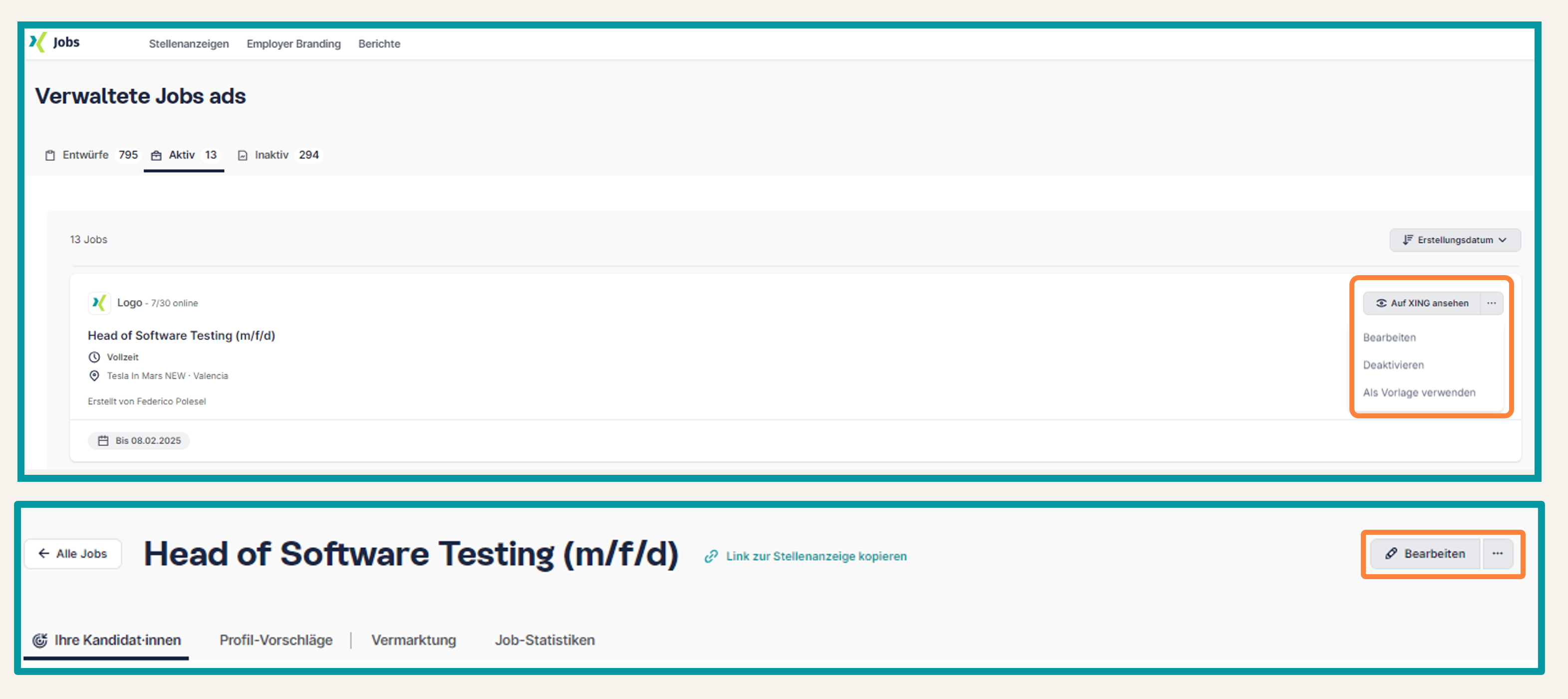Sie haben die Möglichkeit, Ihre aktiven Stellenanzeigen auch nach der Veröffentlichung nach Ihren Wünschen zu bearbeiten.