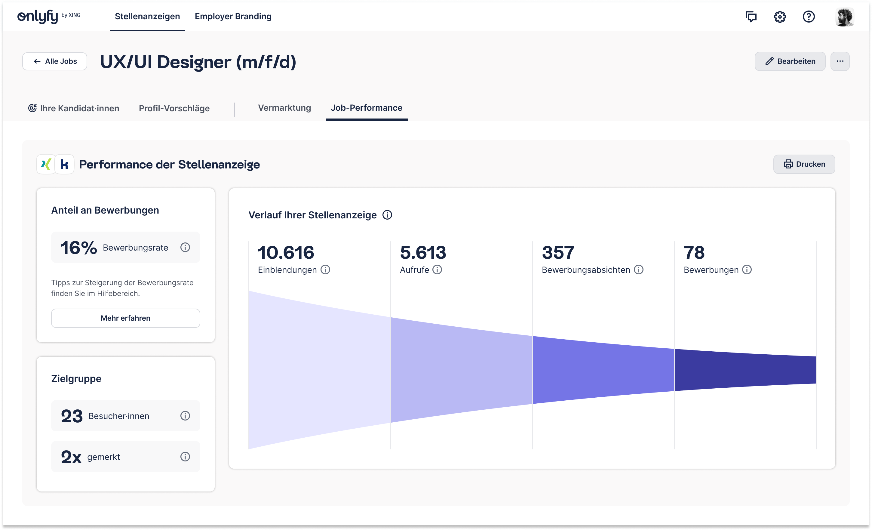 - Genießen Sie volle Transparenz über die Performance Ihrer Stellenanzeigen für fundierte Entscheidungen und optimierte Recruiting-Strategien.
