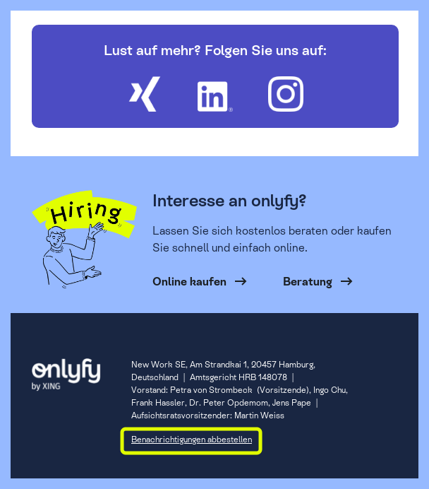 Im onlyfy Newsletter finden Sie nicht nur Informationen über unsere Produkte, sondern auch die neuesten Trends in Recruiting und New Hiring.