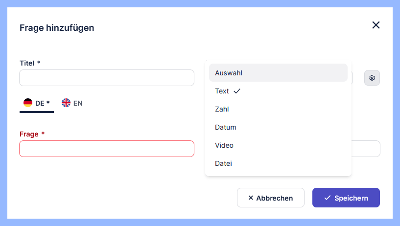 Wählen Sie aus dem Drop-Down-Menü die gewünschte Frageart aus.