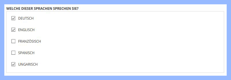 Beschreibung: Die Kandidat·innen markieren mehrere Antworten in einer Liste.