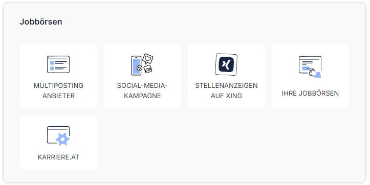 Innerhalb des Tabs „Jobbörsen“ finden Sie das allgemeine Multiposting-Angebot des Dienstleisters zusammen mit seinem Empfehlungsservice.