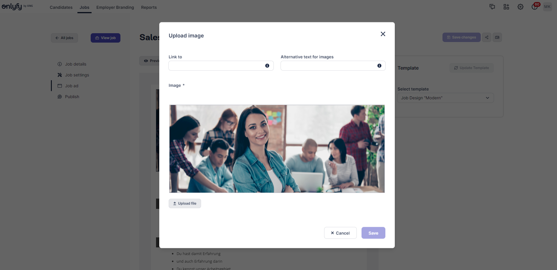 Um Ihre Stellenanzeigen noch effizienter zu gestalten, können Sie ab sofort das Headerbild für jeden Job individuell anpassen, ohne hierfür ein neues Template erstellen zu müssen.