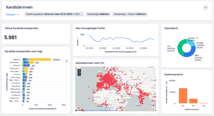 - Vorgefertigte Dashboards zu zentralen Recruiting-KPIs