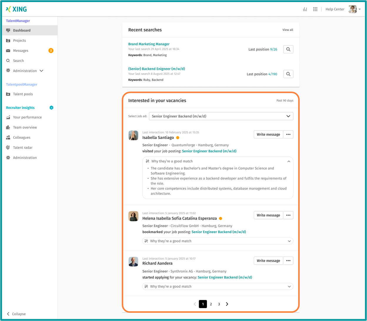 With our new feature, we take your recruiting activities to the next level. You automatically receive candidates who have shown genuine interest in your job or similar positions — directly in your dashboard and inbox without any extra effort on your part.