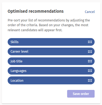 NEW: Through the individual configuration, the results are tailored to you. This allows you to find suitable candidates even faster and more efficiently. You can set the prioritization per project and therefore per job.