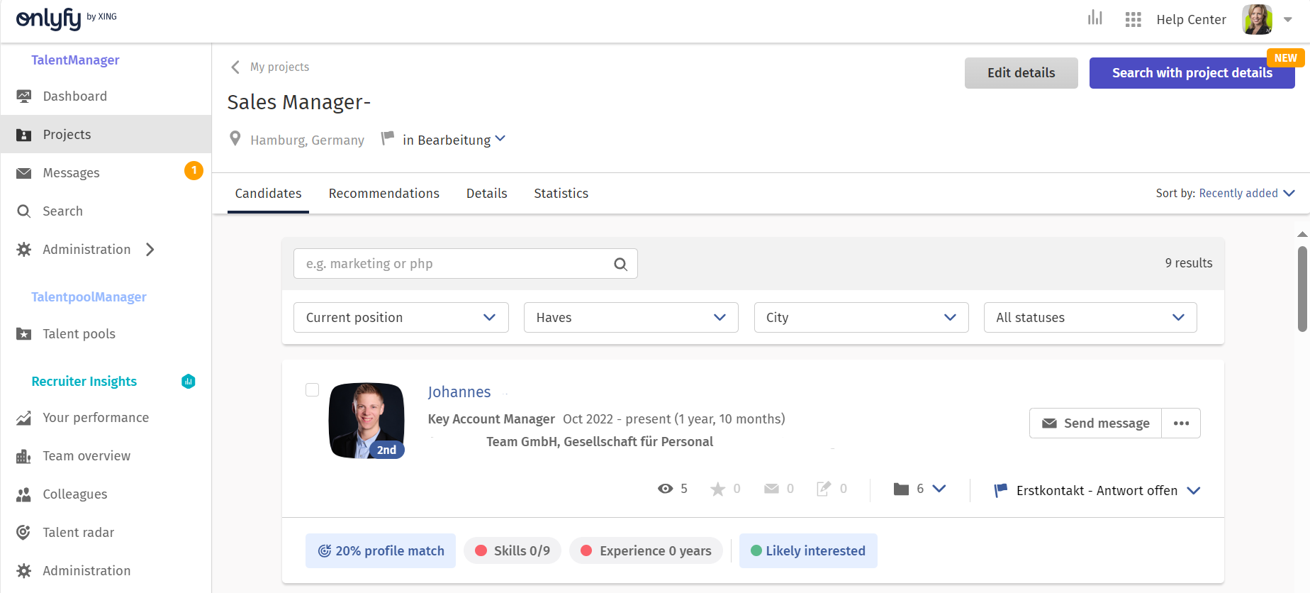 - You will now receive a precise selection of candidates. You can edit your search further if necessary and narrow it down with filters.