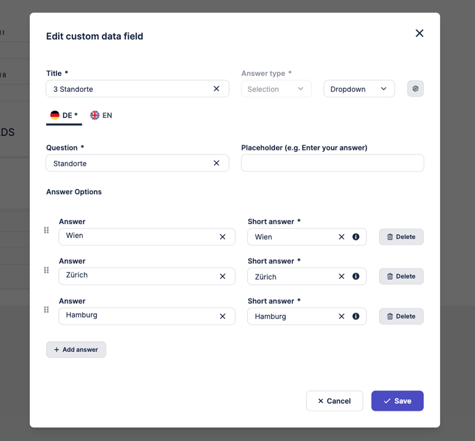 Answer options in custom candidate or job questions of type Select and Multi-select can now be reordered via drag & drop.