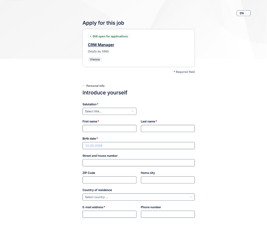 Basic information fields are now displayed in a two-column grid (email, name, address, phone number, birthday). Less scrolling and a shorter overall form make the application flow faster.