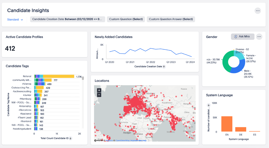 - Pre-built dashboards for key recruiting KPIs