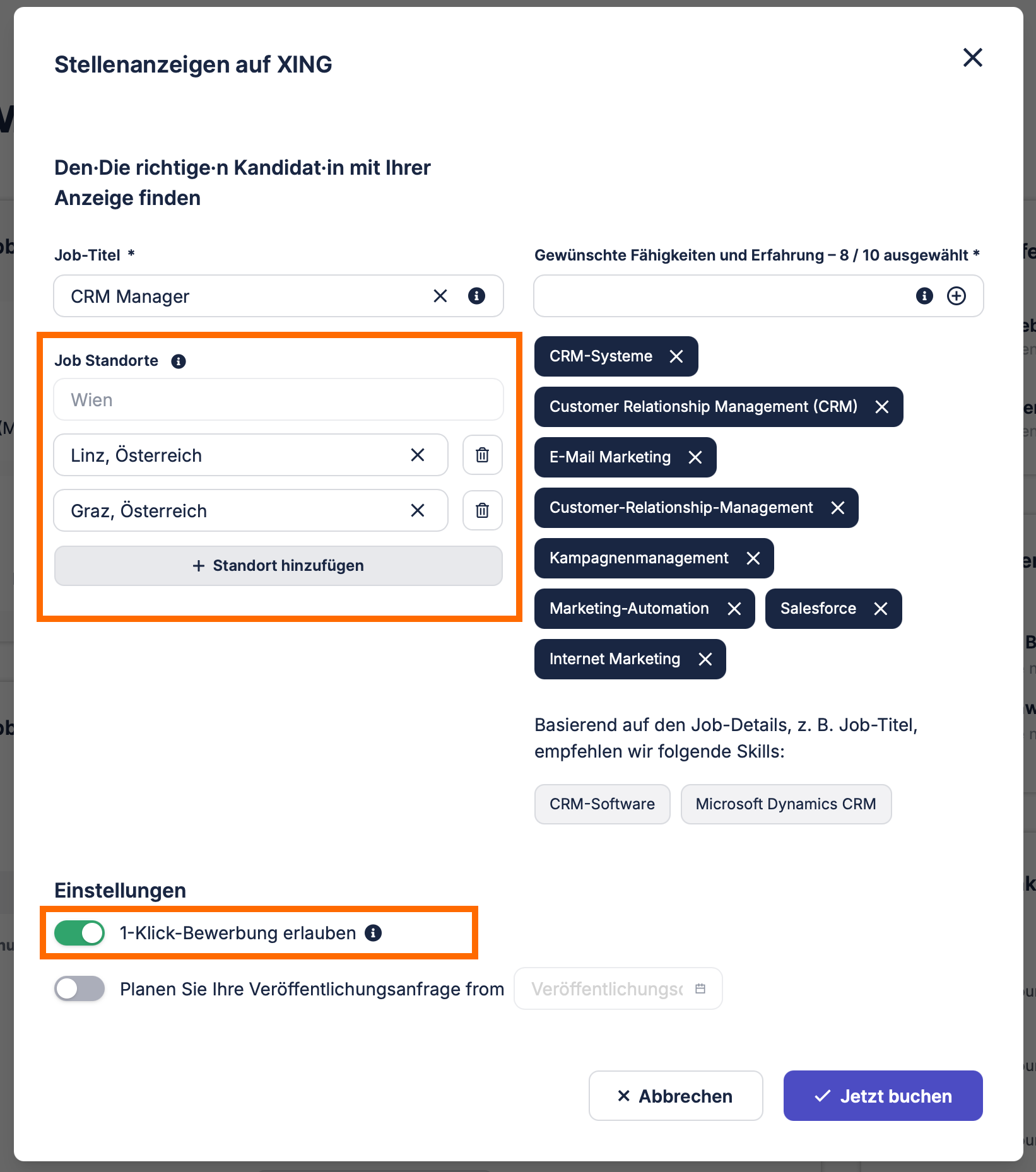 Your XING job ads can now be promoted in multiple locations at the same time within one country.